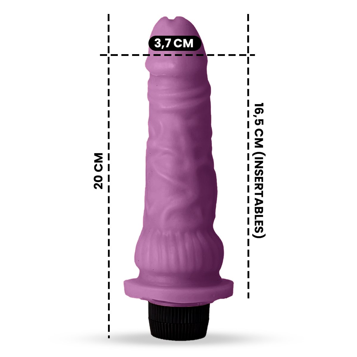 Con forma fálica, este dildo ofrece una experiencia realista. Su textura suave y flexible se adapta a cada movimiento sin perder firmeza, brindando una estimulación profunda y placentera. Su color violeta lo hace aún más atractivo y divertido.